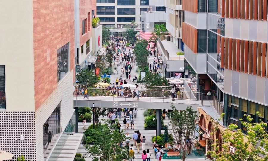 在区域布局上,两大项目纵向串联文化长廊,接轨龙美术馆、西岸美术馆等世界级艺术场馆,成为“美术馆大道”上的能量驿站与生活方式策源地,实现艺术欣赏与生活消费的无缝衔接;横向则以慢行连廊、绿地广场为枢纽,连接西岸国际会展中心、传媒港花园里等配套,服务周边阿里巴巴、腾讯等企业总部,打造滨水特色显著、功能多元的国际化商业街区。